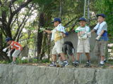 | ひたち 納涼祭 7月30日夕刻から、恒例の小咲園納涼祭に4人が参加した。家族の方が大勢来て、焼き鳥・スイカ・おにぎりなど食べ物担当の私達は大忙しで話をする余裕もなかった。でも、皆さんの喜んでいる顔を見ると、こちらも元気を貰ったようで、暑さを忘れるほどだった。帰りの土産に“ざりがに”を貰い、さわやかな気分で帰途についた。 ふくい 創立5周年 9月3日高畑会長以下93名が参加し鯖江市民センターで式典を開催した。5人で始めた会が今では240人になった。活動も多岐にわたり「さらに前進」を誓い合った。 河内長野 水辺クリーンアップキャンペーン 8月10日昼過ぎから、市役所で市長・議長の挨拶等セレモニーの後、約70人の老々男女がバス2台に分乗して「滝畑」へ向かった。そこでキヤンプや川遊びをしている人達に、啓発物品(キッチンぺーパー 廃油処理袋及びゴミ袋)を配布しながら、キャンペーン用のたすきをかけて「光滝キャンプ場」近くまで歩いた。 しかし思ったよりもゴミは少なく、皆マナーが良くなってきているようだ。家族連れや若者達が楽しんでいる中を歩き回ることがクリーンアップにつながる。今後、みんなのマナーがアップして、「滝畑」がいつまでも清らかな河川であり続けて欲しい。 千早赤阪 出店とイベント 8月19日、小吹台地区の夏祭りがあり、「ナルク千早赤阪」は、出店とイベント(マジック・動物風船遊び)に参加した。出店は、「おでん」と「各会員から提供を受けた生活用品の販売」に決定。 ハッキリしない天候なので、雨天による中止の場合のおでんの処分を心配したが、夕方にはすっかり晴れ上がり、絶好の夏祭り日和となった。心配したおでんも、1時間半で完売したのには驚いた。イベントをお願いしていた人が急病になり、急遽、河内長野の武田さん夫妻にマジックを、動物風船作りは、広場に参加していた子どもの母親にお願いし急場をしのいだ。 終ってみて、つくづく人と人との絆の大切さを味わう事ができた。充実した1日であった。 大分 初の奉仕活動 8月26日、午後6時から2時間、特別養護老人ホーム「そうだ藤の森」内の特設会場で、夏祭りが開催された。このホームの名前は、樹齢400年で有名な神社の藤にあやかってつけられたもので、小川のセセラギと神社の森や田園に囲まれた、のどかな故郷といった環境である。 活動は焼きそば即売と、入所者の移動や会場設営など。施設利用者の8割近くは、家族が付き添っていたので参加者も多く、好評の焼きそばもアッと言う間に完売。開会直後から小雨交じりのあいにくの天気で、決してスムーズな進行ではなかったが、入所者の皆さんは、家族や職員やボランティアの暖かい気配り介助で、庄内神楽・鶴崎踊り・花火大会・くじ引きまで、終始微笑んで楽しんでいた。初めての奉仕活動に「支援の重さ、大切さ」を体感した。 |