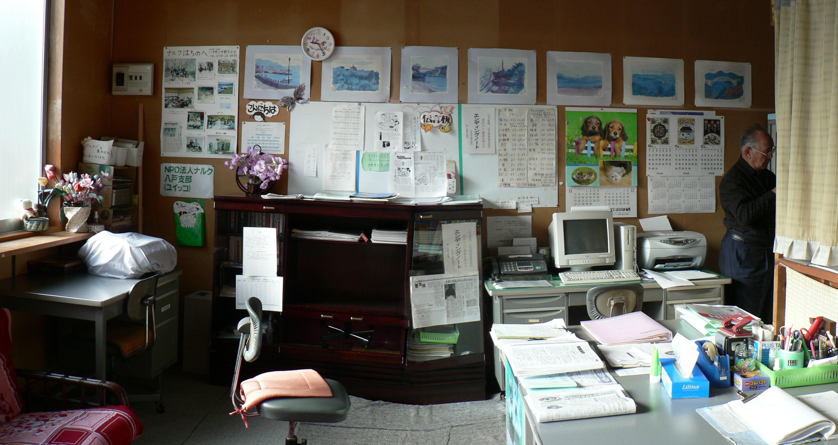 | 拠点リレー訪問 22 ナルクはちのへ(ゆい っこ)訪問記10月初旬、東北新幹線に乗って大阪からたった7時間で終点八戸駅に着きました。便利になったものです。大阪ではまだ夏の名残が残っていましたがやはり青森県となると紅葉が落ちてしまっていて日本列島の季節の多様さを感じながら下車。 歴史と自然,環境に恵まれた八戸 八戸市は青森県の南部に位置し、義経にまつわる伝説が数多く言い伝えられている歴史のあるところ。漁業、製鉄、製紙などの産業の歴史も古く三沢基地でも有名です。 このように自然や環境に恵まれた八戸市で平成12年5月に68番目の拠点としてナルクはちのへは生まれました。 現在は117名、79所帯、時間預託活動はほぼ一ヵ月100時間となりました。 ライフ・ボランティア・プラン 全会員一人一人がボランティア活動・研修会・レクリエーションに参加し,それによって全会員が生き甲斐とやりがいを創造していくことを基本としています。 類家和吾郎代表、菊池アヤ子、中村公子副代表、樋口シゲ事務局長はじめ運営委員の皆さんはそろって元気一杯。和気藹々とした雰囲気を代表が醸し出しています。ナルクはちのへは発足当初から会員の方のご好意で市内の便利な所に駐車場付きの広い事務所を確保されています。その中に会員持ち寄りの机、ソファー、パソコン,ファックスなどを整備、事務所当番もできています。これがライフ・ボランティア・プランの大きな支えですね。 特徴のある活動 会員の家族の介助 会員家族の介助を皆の協力で進めて感謝されています。今後ますます広げる予定とのこと。 ナルク農園と収穫祭 会員の方に提供していただいたナルク農園をみんなで耕し秋に収穫祭。 ![]() 今回の取材が丁度収穫祭に間に合いました。収穫した大根やネギなどを材料にお料理教室を開催。その料理を頂き歓談しながら会員の方の篠笛合奏、南部昔語りを聞くという楽しい行事でした。 このほか新年会、お雛さま会など様々です。 パークゴルフで元気一杯 パークゴルフってご存知ですか。グラウンドゴルフに似ていますが芝生のコースを造って行う点が大きく違って自然に中でのプレーが人気のようです,北海道で始まったスポーツで、北海道に800コース,他県に100コースあります。八戸では代表が中心になって時にはパークゴルフ花見会の人たちと一緒に八戸名物のセンベイ汁を囲みながらプレーを楽しんでいるようでした。また高齢者の生涯スポーツとしてコース設置のため八戸パークゴルフ協会の署名運動に参加し、八戸市への働きかけもしておられました。 高齢のご夫婦や独り住まいの方 におせち料理を作って配ります。食堂経営をしている男性会員の方の提案から16年暮れにおせち作りをはじめたそうです。 今年も八戸社協の援助を受け、公民館をお借りして約40名の会員位が50セットのおせち作りに挑戦します。高齢者の方、一人暮らしの方々から大変感謝されており、地域の行政との協働がさらに広がっていくことでしょう。 多士済々、とくに女性が「ごうじょっぱり」 いい意味で女性が頑固で働き者(=ごうじょっぱり)だと家庭は円満です。、ナルクはちのへの女性は仕事や技能を持ってナルク活動をしている人が多いのが特徴です。パソコン教室の経営,シンポジウム講師、FM放送の仕事、料理指導、篠笛演奏,昔語りなど多彩な能力を持っておられます。 この力が今後のナルクはちのへを大きく育てる原動力になる事を確信しました。 (野村文夫) |