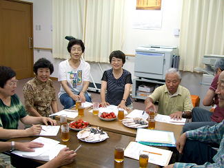 ナルクシニア介護サポーター第1回養成講座開講近畿の5拠点を対象にインストラクターを養成本紙前月号1面でお知らせしたように、ナルクなどボランティア団体に近々要請が増えることが確実視される「要介護TU程度のサービス」に応えるための、表記養成講座の第1回がスタートした。 今回は近畿の5拠点(びわこ湖西・京都・奈良・大阪・神戸)から選抜された17名が参加、この17名は11月9日の終了式で「修了証書」を受け取ったあと、それぞれの拠点に帰り、インストラクターとして各拠点で「ナルクシニアサポーター養成講座」の講師に当たることになる。 ![]() 10月5日(金)午前10時から先ず高畑会長の挨拶を兼ねた講議で講座は始まった。 講議の中で高畑会長は「今日お集まりの皆さんの目を見ると、いきいきと輝いており、嫌々参加していないことがすぐ分かりました。私も家内と2人でホームヘルパー3級の講座を受けに行ったときのことを思い出します。私のボランティア人世はそこから始まったように思います。どうぞ皆さんもせっかくの機会ですから、頑張って全課程を受講され、第1号のインストラクターとして羽ばたいてください。1回でも休まれると修了証書が出ないそうですから(笑い)頑張ってください」と挨拶、この研修の意義、活動の中での位置付けなどを分かりやすくユーモアを交えて話された。 午後からは崇嶋講師による「寝たきりにならないための実技」と題する離床指導があり、講師のユーモラスな身振り手振りに大爆笑のうちに初日を終えた。 なおこの養成講座は今後順次、北海道・豊北・関東・・・と各ブロックで開催され、多くのナルクの会員が身体介助ができるようになり、また会員外にもこの講座を開放し、ナルクの存在価値を高めていく計画である。 団塊世代への次世代育成セミナー団塊世代の大量定年がピークを迎えている。各種のボランティア団体が、懸命に呼びかけをしているが、ナルクでも「何かのきっかけがあれば、必ず大量の入会が期待できる」として、いろいろな対策を模索している。 このほどその一環として「こども未来財団」と共催で「次世代育成セミナー」を開催することとした。 これは子育て世代の要望を踏まえ、団塊の世代が地域の「子育て支援活動」や「次世代育成」に関心をもってもらおうという狙いで企画されたもので、合わせて団塊世代の「企業から地域へ」という流れをスムーズなものにしようという意図で計画された。 セミナーの内容は、お茶の水女子大学生活科学部の牧野カツコ客員教授の基調講演の後、パネルディスカッションが開かれる。 これにはナルクの高畑会長もパネラーとして参加する。その他のパネラーはNPO法人子育て広場全国全国連絡協議会奥山千鶴子理事長、大阪警察病院看護師、団塊の世代代表等が予定されている。 なおコーディネーターには、読売新聞の野間裕子編集委員が当たる予定。 日時:12月8日(土) 13時〜16時30分場所:アビオ大阪 小ホール 大阪市中央区森ノ宮中央1ー17 電話:06ー6944ー1151 参加希望の方は、拠点を通じて本部に申し込んでください。 ![]() ![]() ナルクの輪に支えられて 関谷 絢子(江別) 今年はとても暑い夏でした。そして、私にとっては様々な老いの問題とナルクの「暖かい輪」を感じた夏でもありました。私の父母は大阪の寝屋川に2人で住んでいます。父が突然6月に京都の病院に入院しました。近くに身内がいなく、高齢の母が一人で看病するのは大変なので、拠点に相談したところ、ナルクの遠距離介護の利用を勧めてくれました。 7月に、「ナルク寝屋川」に伺い代表の竹田さん、コーディネーターの長村さんとお会いしてご相談しました。初めてお会いしたのにナルクの仲間というだけでとても親しみを覚えました。通された事務所の2階に茶道具が並んでいる和室があるのがとてもうらやましく思いました。 極暑の中、突然の依頼にも拘らず、親身になって色々きめの細かいお世話をしてくださり感謝でいっぱいでした。改めてナルクの暖かい輪を感じました。お陰さまで父は9月から寝屋川の病院に転院できました。その後も何かと母を見守って頂いております。 母の介護のお願いに伺ったのに、活動の話で盛り上がり、本部を中心とした幹に沢山の拠点の花が咲き、全国の仲間が頑張っているのを肌で感じ、元気をもらいました。 ナルク江別は設立して8年、自分や江別の仲間からも忍び寄る老いを感じるときがあります。夫婦で入退院を繰り返している会員、難病と付き合っている会員、昨年の総会後の講演で、お元気に戦争の体験談を聞かせてくれた方が8月に旅立ちました。やりきれない現実に出会うこともありますが、仲間の暖かさ、思いやりのこもった笑顔に「困った時はナルクがあるよ」「ピンピンころり」を心の片隅に、ナルクで出会った友と老いと上手に付き合っていけたらと思います。 ナルクには色々な仲間がいます。事務所に家庭菜園の野菜を持ってひょっこりと来てくれる仲間