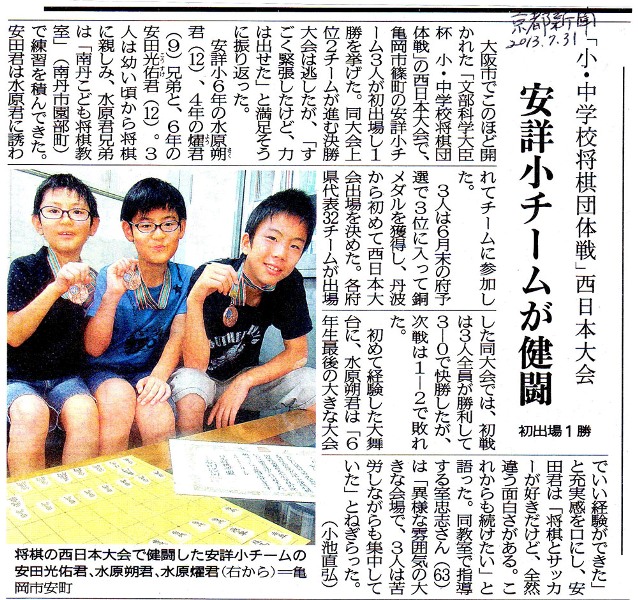 全国大会に出場したとの京都新聞の記事が送られてきました。