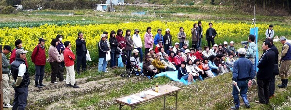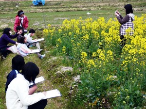 休耕田に菜の花を栽培すると同じように、学校の校庭の一角に菜の花を植え、また値から油を絞り、食用にし、油かすは肥料に、廃油は燃料にして自然循環をすることで環境教育の一環として取り組みを始めました。