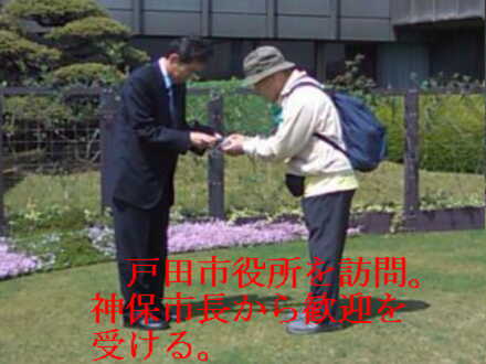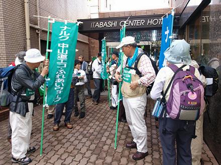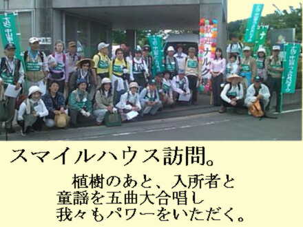戸田橋を経て、戸田市役所、特養スマイルハウスで植樹をする。