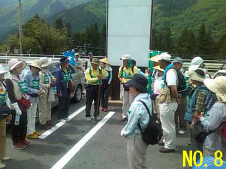 | 今日は連日の坂道の登り下りや長距離歩きではなく、 いつもの半分くらいの距離なので、出発も一時間以上遅く 身体を休める良い一日でした。 元気元気と言っても平均年令68才の集団、最後まで気が抜けません。 No.1 遅い出発で余裕のウォークですが、今日も暑い… No.2 街道沿いの水舟、檜の丸太をくり抜いた水舟に裏山からの湧水が昔も今も注がれている。 No.3 須原宿水舟の前で集合写真、奈良井宿から編みがさ姿が目立つ様になりました。 No.4 水の恵みをいっぱい受ける須原の宿場を歩く No.5 定勝寺で見つけた小さな可愛い石仏 No.6 須原宿の名刹、定勝寺の山門を出る高畑会長ご夫妻 No.7 須原宿のはずれ、道端の案内板と湧水の心使いが嬉しい No.8 道の駅大桑で昼食後、茨木拠点から6名参加し紹介される No.9 JR野尻駅でトイレ休憩後、今夜の宿あてら荘へ向かう No.10 久しぶりに広々とした会場で、途中参加の人を加え和やかな夕食 |