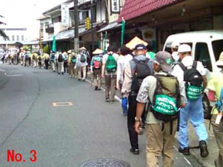 | 今朝からいろいろな拠点からの参加者が加わり、 長い行列が続き町行く人も何事かと異様な目で見たり、ナルクって何?と問い掛ける人もいました、宣伝効果抜群です。 守山宿では通りすがりの店先で、ちょとした会話から手作りの飾り物を頂きました、 人と人の心が通ったふれあいウォークそのものの瞬間でした。 No.1 野洲駅を大集団が出発 No.2 街道の名残を感じさせれ道しるべ No.3 野洲の町を歩く長蛇の列 No.4 昼食をとった草津駅前の新しい道しるべ No.5 アーケードの草津宿を行く No.6 草津宿にあった、右東海道いせみち、左中山道美のぢ、の道標 No.7 今日一日高畑会長の息子さんご夫妻とお孫さんが参加され、会長も明日に向かって元気百倍のご様子です No.8 南草津でびわこ南拠点から、びわこ南東拠点に引き継ぎ、びわこ南拠点の皆さん有り難うございました No.9 琵琶湖近江大橋を渡って大津へ No.10 大津びわこ湖畔で完歩者組の記念撮影、今日も笑顔の絶えない一日でした |