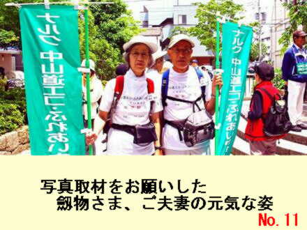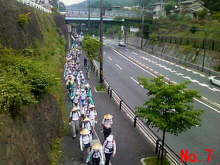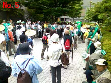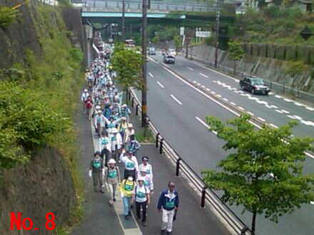 | とうとう最終日になりました、皆な達成感と終わってしまう淋しさと、複雑な思いを持ってスタートいたしました。 No.1 最終日の朝、少々感傷なホテルの出発風景 No.2 大津駅前の集合風景 No.3 グループホーム・クリーム膳所でトウヒの木を植樹する高畑会長 No.4 同上の職員の方々と記念撮影 No.5 山科東部公園で昼食後のスタート風景 No.6 山科で完歩者の最後の集合写真 No.7 蹴上への登りを行く大集団 No.8 同上 No.9 蹴上より三条へ向かう高畑会長、水戸黄門ふうに持たれいる杖は、鳥居峠で拾われた軽くて丈夫な木の枝です、きっと宝物になることでしょう No.10 京都三条の河原で出迎えてくれるナルクの皆さん |