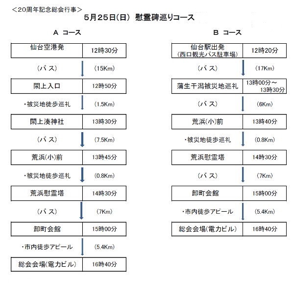 コース案内 慰霊ウォーク 植樹 被災地視察